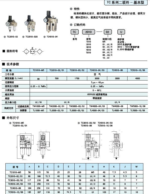 TC2010-02U,STNC气源处理元件,TC系列二联件