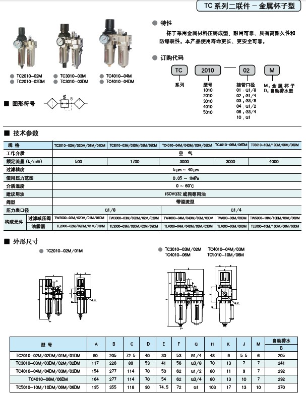TC3010-03,STNC气源处理元件,TC系列二联件